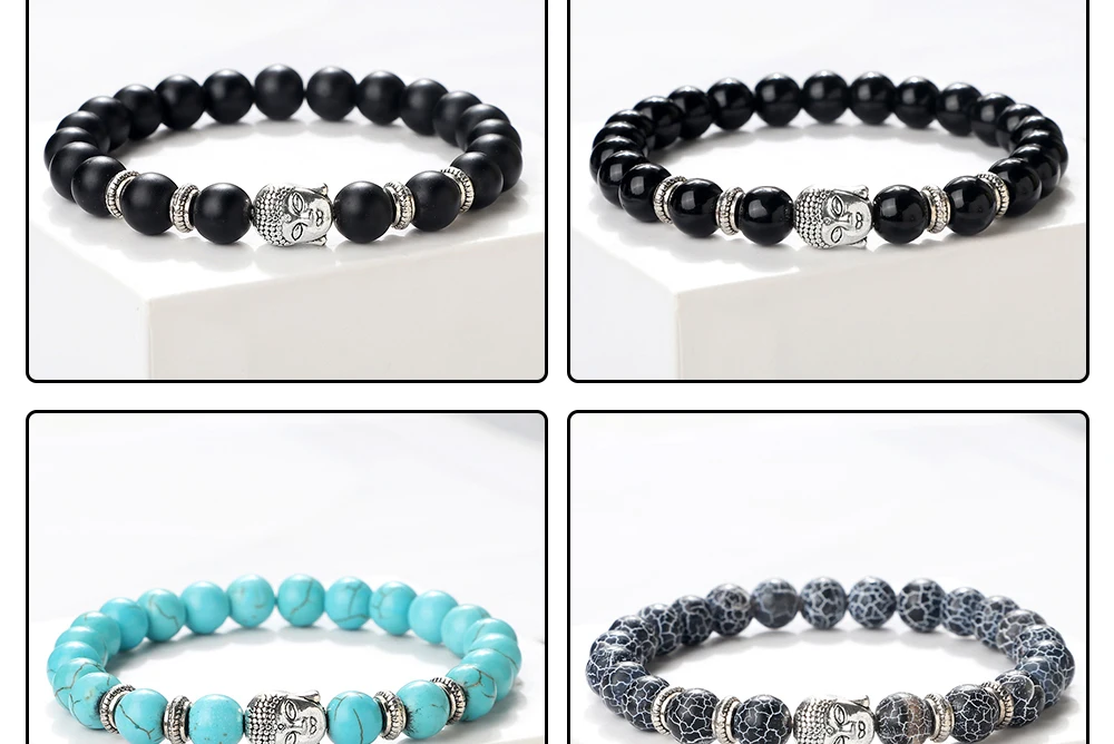 Chaque bracelet intègre un symbole spirituel de Bouddha, alliant élégance et signification profonde.